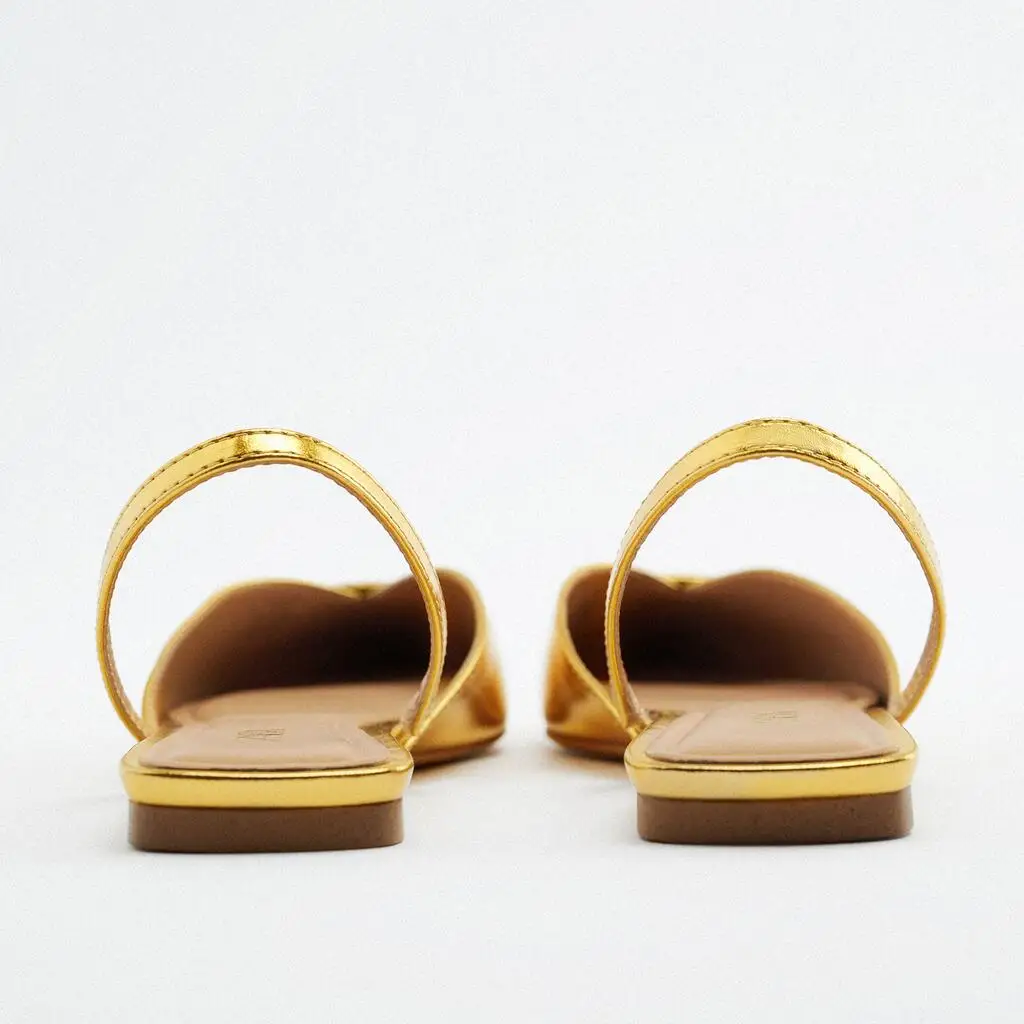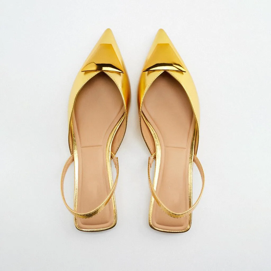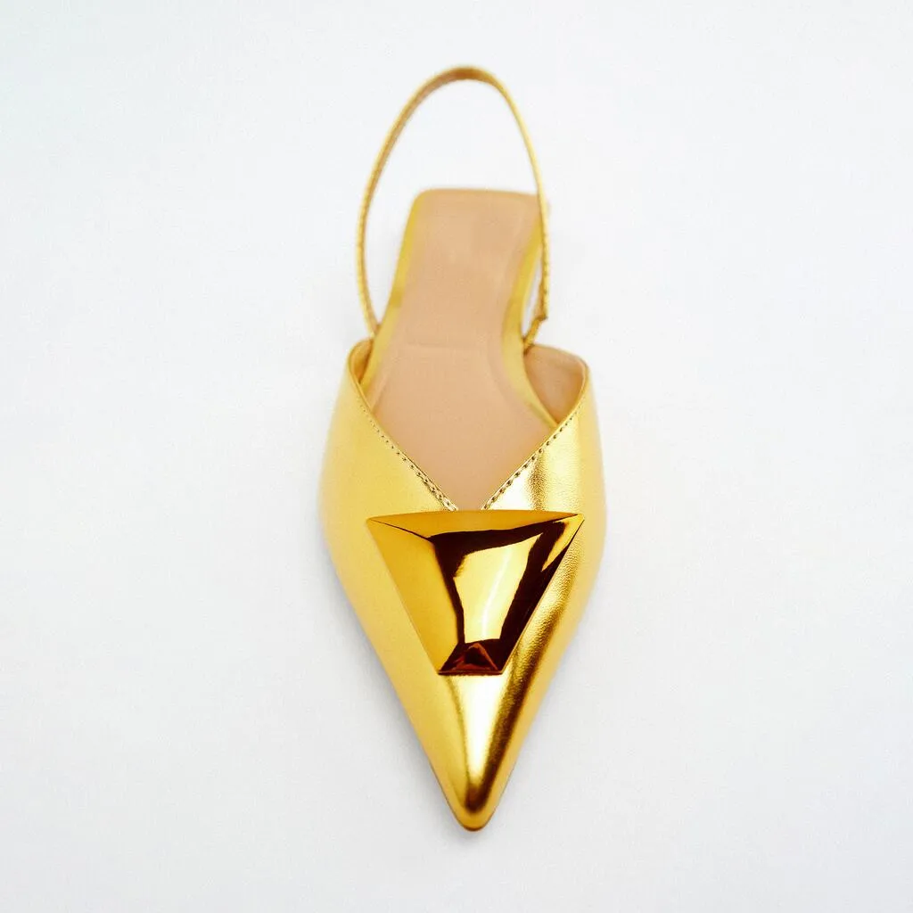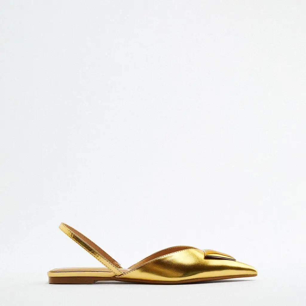 Custom Luxury Leather Metal Silk Ribbon Pointed Head Designer Shoes Sandal for Women and Ladies Flat Shoes Femmes Fashion